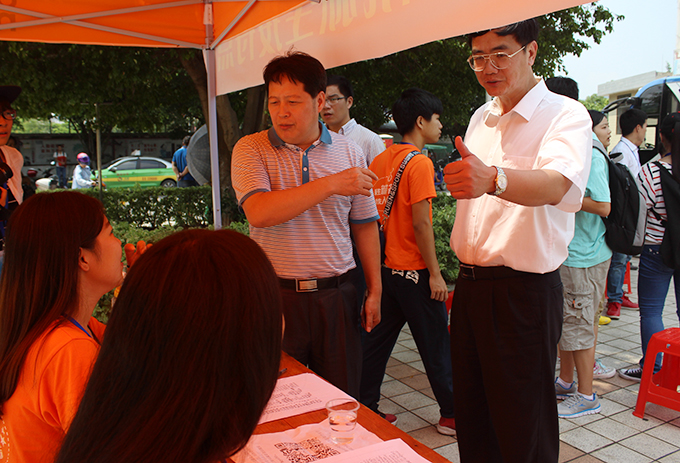 新学期伴随着微凉的秋风而来,新同学带着满满的行囊走进大学校园。9月11日和12日是我校2015级新生入学报到的日子,而在迎新中忙前忙后的“橙衣天使”——志愿者,成为了一道亮丽的风景线。新生报到处、新生咨询处、入学体检处、家长休息处、行李放置处、学校宿舍楼,处处穿梭着志愿者忙碌的身影。