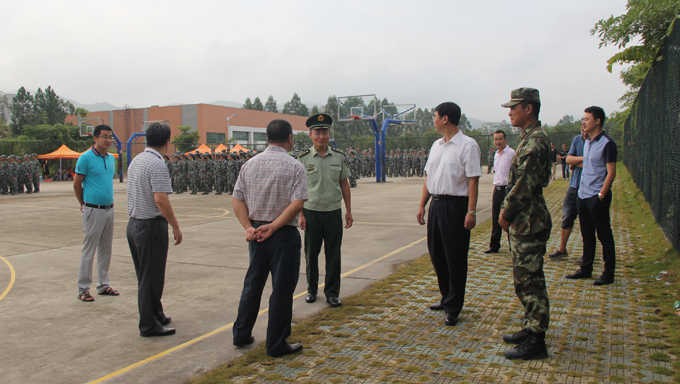 9月22日,段邦贤书记在陈农心副校长、学工处相关负责人、市武警支队军训相关负责人的陪同下,来到2015级新生军训现场,慰问了此次参训的武警支队官兵,对2015级新生的军训工作进行了视察。