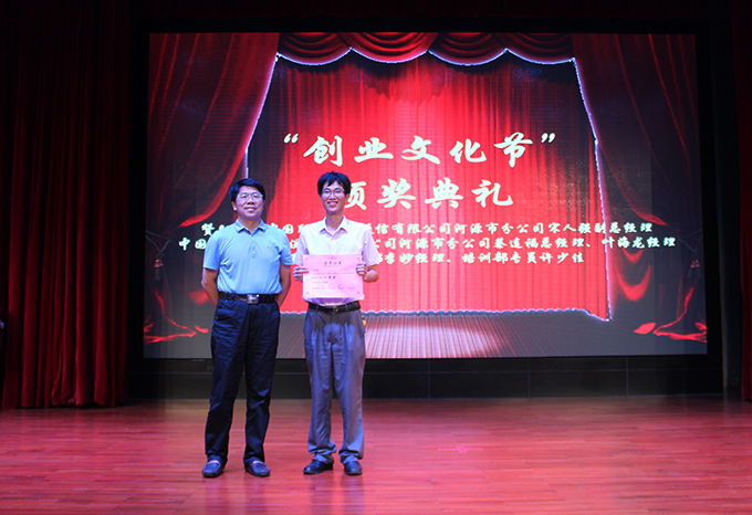 | 刘安华校长为获得优秀创业导师一等奖的老师颁奖 |