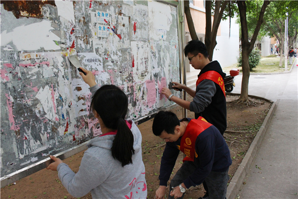 | 志愿者在清除“牛皮癣” |