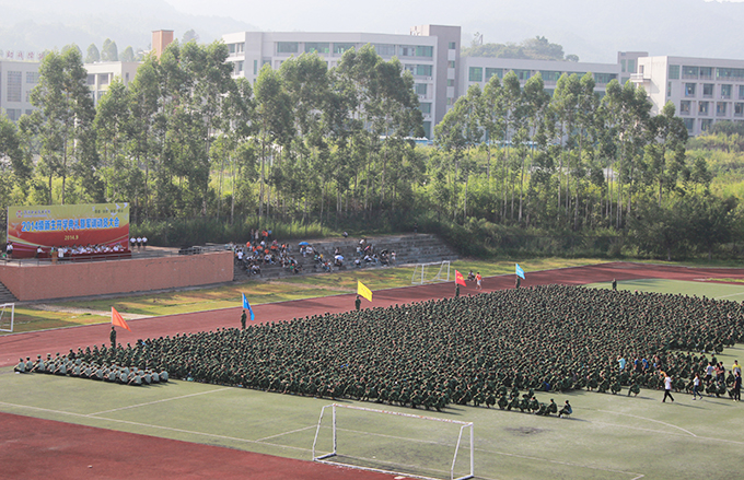 最后,赖小景副校长作军训动员讲话,他强调了军训的重要性,对参加此次军训的新生提出了三点要求,一是在军训中磨练出军人的气质,二是在军训中培养出军人的作风,三是在军训中展现军人的风采。