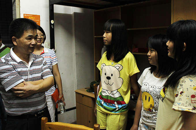 唐汉芳一行先后走访了五年制语文教育、数学教育、英语教育等学生宿舍。每到一个宿舍,领导们都与新生进行亲切交谈,询问有关情况,嘱咐新生要学会做人、学会学习、学会生活,要相互帮助、相互理解,希望他们能尽快适应大学生活,更好地进入角色,并能够认真对待学习。同学们都十分踊跃地与来访人员交流自己的心得和对大学的感受。此外,领导们还仔细查看寝室的生活设施情况。