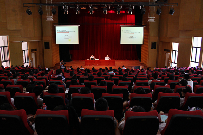 9月9日,以“建立新型国际关系——关于国际关系和我国外交战略”为主题的《习近平总书记系列重要讲话读本》宣讲活动在我校学术报告厅举行,宣讲活动由广东外语外贸大学国际战略研究院教授周方银主讲。我校党委副书记韦荣、副校长陈德清、赖小景,市委宣传部副调研员王文巧、市委宣传部理论科科长钟广鹏,及师生代表400余人参加了此次宣讲活动。