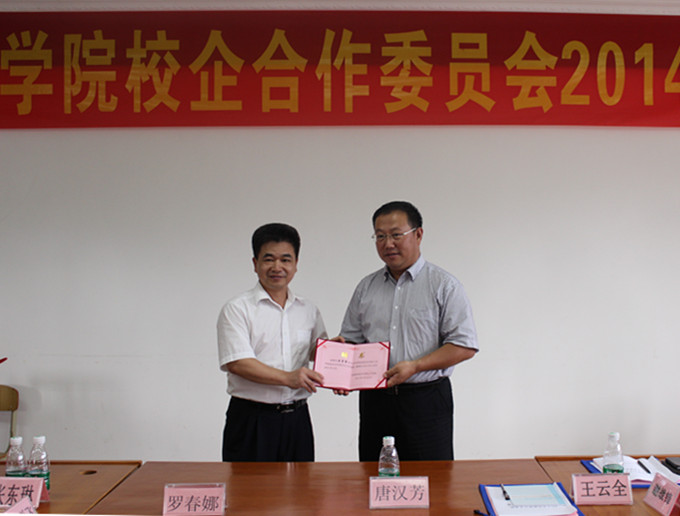 6月26日下午,根据学校校企合作理事会的统一部署,人文学院在教学楼A302召开校企合作委员会2014年会。唐汉芳副校长出席会议并为新任委员颁发聘书。