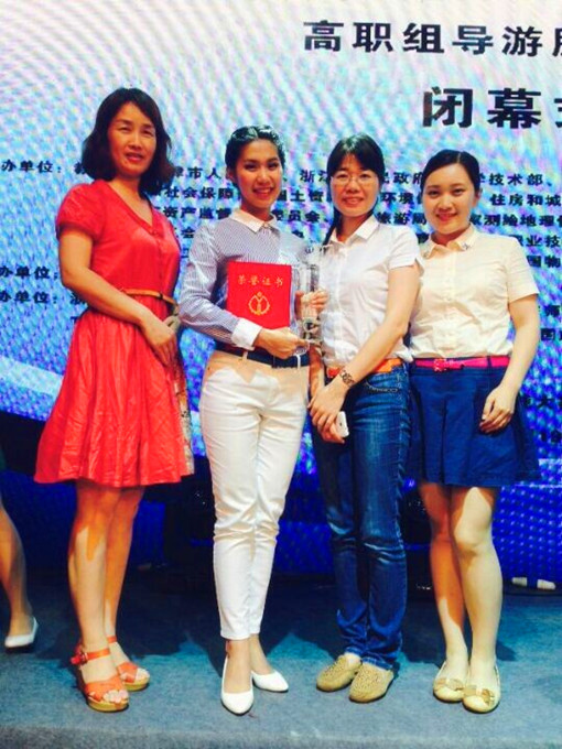 6 19 全国职业院校技能大赛导游服务赛项在杭州落下帷幕。在来自全国30个省(市、自治区) 90所院校的143名选手参加中、英文两个组别的赛事比拼。我校12级旅游管理2班的陈林静同学以其出色的发挥脱颖而出,成功获得中文组第五名的好成绩,成为八位一等奖选手中唯一来自广东的选手!陈林静同学的出色表现,充分展示了我校旅游人才培养的成果。