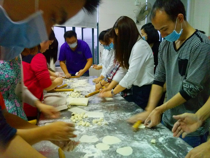 为了这次联谊,工商学院工会给予了大力支持,烹饪专业的老师为活动精心准备了蔬菜、面粉、肉及佐料,让参加活动的单身青年通过包饺子活动增进了解。单身青年分工合作,在烹饪专业同学的指导下,现学现卖,发挥各自特长,和面的和面,擀皮的擀皮,拌馅的拌馅,不同形状的饺子摆放得错落有致,场面很是精彩,那是每位青年亲手劳作的成果。现场气氛非常温馨、浪漫,很多参与者更是高兴得合不拢嘴,大家在包饺子的过程中各自分享经验,使单身青年更好地相互认识、加深了解。过了一会功夫,一碗碗热气腾腾的饺子和包子送上餐桌,大家吃得津津有味,单身青年小叶说“吃着饺子,心底是暖暖的感动”。小小的饺子温暖着单身青年的心,更传递着组织对青年员工的关心和关爱。