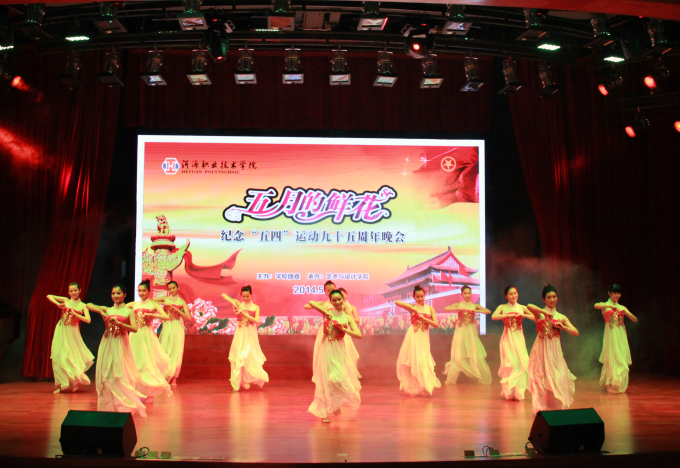 青春涌动,舞步飞扬。晚会在舞蹈《盛世欢腾》中拉开帷幕。《我的祖国》、《红旗飘扬》、《再见了大别山》、《你是这样的人》、《把一切献给党》、《怀念战友》、《共和国之恋》、《美丽中国》、《田野的春天》、《我像雪花天上来》、《家乡有座风雨桥》、《那就是我》、《乡音乡情》、《节日欢歌》等节目陆续精彩上演,不断点燃现场气氛,赢得现场观众阵阵掌声。表演者们用昂扬的歌声,饱满的情怀唱响五四精神,表达了对党和国家的赞美和热爱。晚会最后,学校教工合唱团深情演唱了《党啊,亲爱的妈妈》和《在灿烂阳光下》两首曲目,为整场晚会画上了一个圆满的句号。