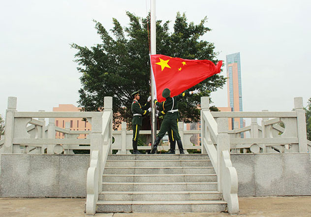 伴随着国旗护卫队整齐的队伍、铿锵的步伐,升旗仪式在全体师生的注目下庄严进行。随后,副校长赖小景回顾了我校在过去一年里围绕“改革创新,文化育人”的发展思路取得的显著成效,并表示在新的一年里,学校将继续围绕发展主题,突出质量导向,着力培养学生职业核心能力,不断提高学校内涵建设水平和综合办学实力,为实现省内一流、国内先进高职院校的目标而努力。同时,他寄语全校师生在新的学期扬鞭催马,马上行动,通过自己不懈的努力取得更好的发展与进步。