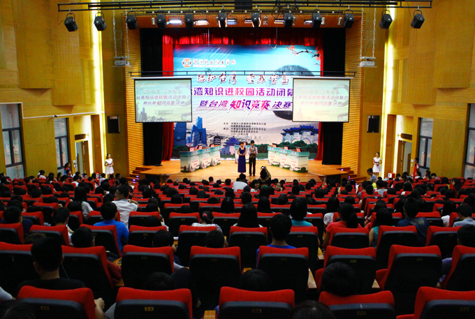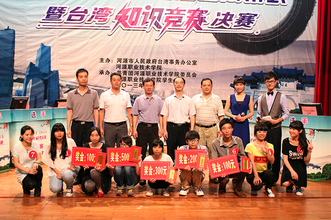 6月14日晚,以“认知台湾 爱我宝岛”为主题的首届台湾知识进校园系列活动闭幕式暨台湾知识竞赛决赛于我校报告厅圆满落幕,河源市人民政府台湾事务办公室主任谢柱、副主任李斌、副调研员蓝国平,我校副校长赖小景,团委全体老师、各学院团总支书记、校级各大组织学生代表及各学院参赛队员参加了活动。