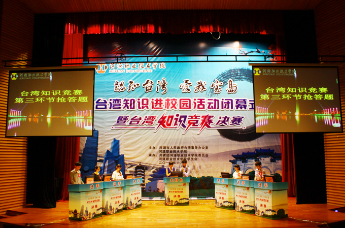 据悉,此次“台湾知识进校园”系列活动是我市首次在学校开展的涉台宣传活动,活动为期一个多月,从5月15日开始到6月14日,先后举行了台湾知识现场竞答、“台湾文化我来讲”演讲比赛和台湾知识PK赛3场活动,参与人数高达2000多人。
