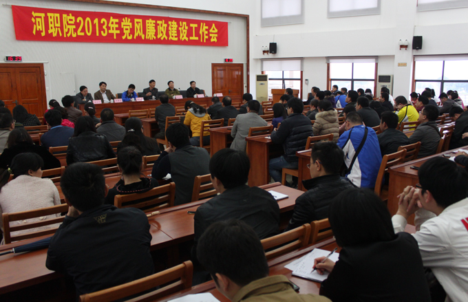 4月11日下午,学校召开2013年党风廉政建设工作会议,学习贯彻党的十八大、中纪委十八届二次全会、省纪委十一届二次全会、省教育纪检监察会和市纪委六届三次全会精神。