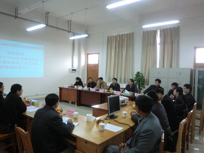 1月11日,我校在实训中心B406召开了广东省教育厅2013年高职院校新增专业现场检查工作会议,对机电工程学院申报高分子应用技术专业进行了论证及评估。省教育厅专家组一行5人、我校校长刘安华、副校长陈德清以及教务处、机电工程学院相关人员参加会议。