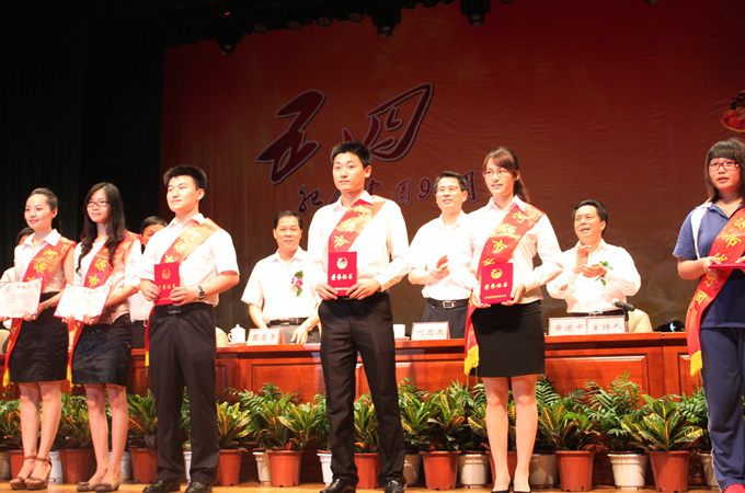 5月4日晚,河源市庆祝建团90周年暨“五四”运动93周年纪念大会在市会议中心隆重举行。全市1000多名团员青年代表欢聚一堂,共庆中国共产主义青年团成立90周年。大会表彰了河源市2011至2012年度河源市五四红旗团委、五四红旗团支部(总支)、优秀共青团干部、优秀共青团员。我校人文学院团总支、艺术与设计学院团总支荣获“河源市五四红旗团总支”称号,校团委办公室黄志鹏主任荣获“河源市优秀共青团干部”称号,我校学生黄增礼、王希、刘丽娜、黄明杰、陈湘怡等5人荣获“河源市优秀共青团员”称号。