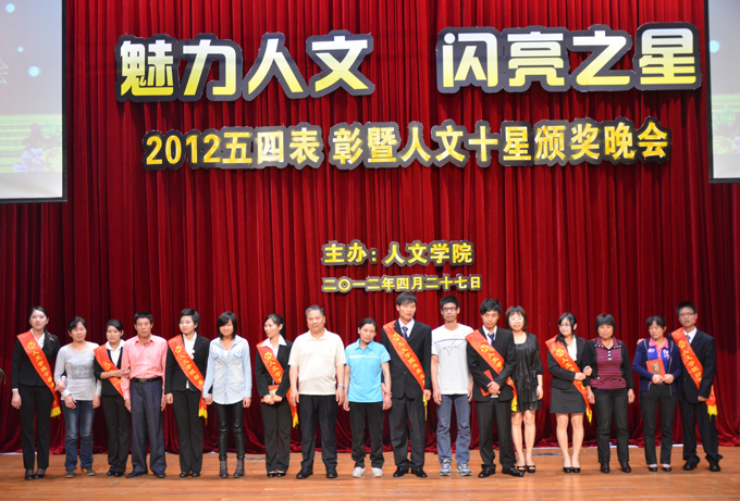 4月27日晚,我校人文学院于学术报告厅举办2012五四表彰暨第二届“人文十星”颁奖晚会。