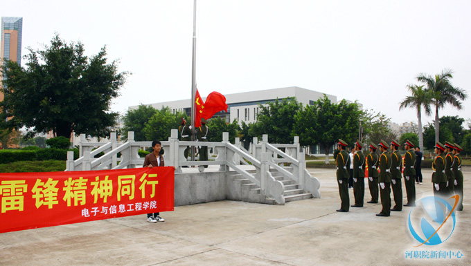 3月5日,我校电子与信息工程学院全体师生于贤能广场举行升旗仪式。全体师生在国旗下大合唱歌曲《学习雷锋好榜样》,现场歌声雄壮,气势磅礴。