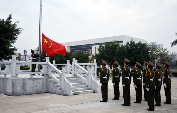 伴随着庄严的国歌声,五星红旗在广场上冉冉升起。来自电信学院10级楼宇智能化专业的徐阳辉代表学生发言,他在发言中回首了自己过去一年的工作,并表示会继续脚踏实地,学习专业知识,积极参与活动,促进自身的全面发展。
