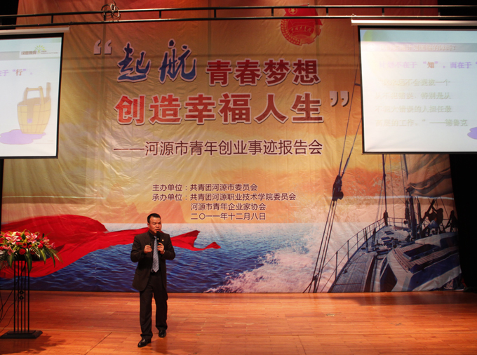 12月8日,以“起航青春梦想・创造幸福人生”为主题的河源市青年企业家创业事迹报告会在我校学术报告厅举行。团市委副书记张志勇出席了报告会,他希望我市的广大青年都能牢固树立自主创业意识,抓住机遇实现人生梦想。