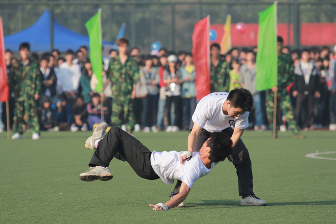 开幕式上的散打:体现校运会顽强拼搏的精神