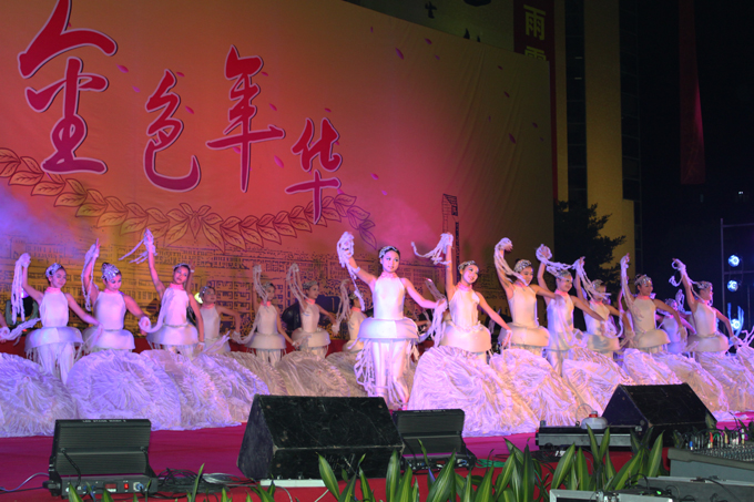 10月29日晚,我校在图书馆前举行了一场以“金色年华”为主题的隆重的校庆文艺晚会。我校党委书记高仁泽、副书记韦荣,有关嘉宾以及师生代表出席了此次晚会。