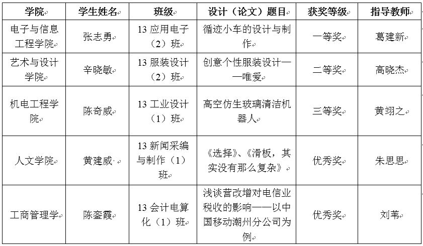 附表:星空在线(中国)唯一官方网站2016届校级优秀毕业论文获奖名单
