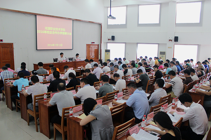 (科研处通讯员 涂华锦)7月13日,2016年校企合作办学理事大会在学校举行,校长陈德清、副校长唐汉芳,市人社局局长苏晖,市教育局、高新区、龙川县工业园等涵盖“政行企校”的105家企业单位的领导和企业家出席此次会议。