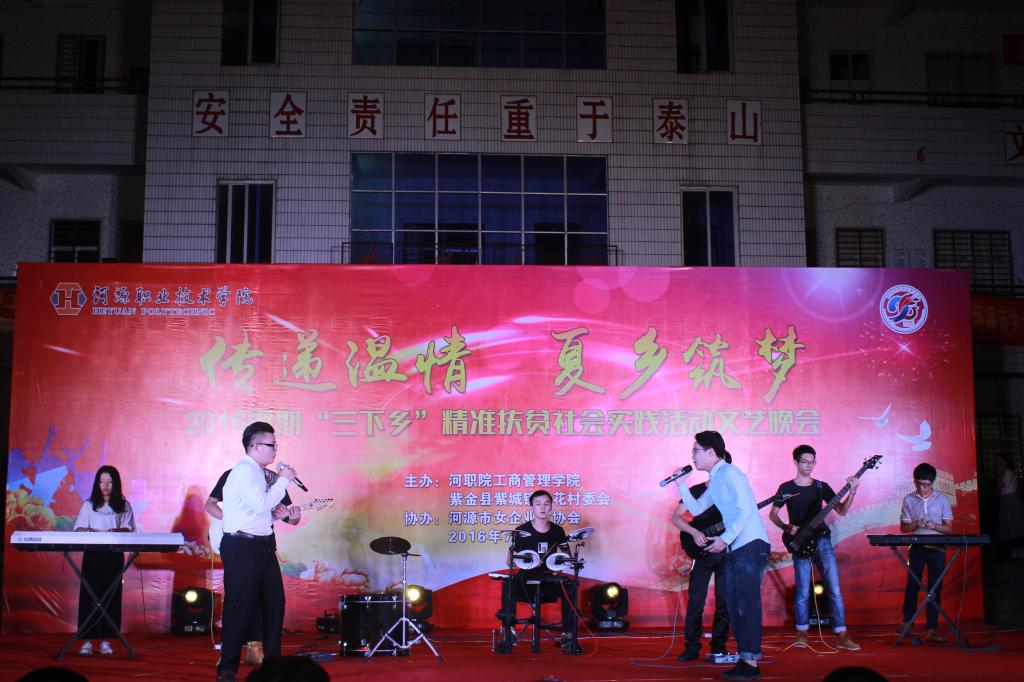 (工商管理学院通讯员 朱伟文)7月26日,我校工商管理学院“传递温情•夏乡筑梦”2016暑期“三下乡”精准扶贫社会实践活动文艺晚会在紫城镇黄花村隆重举行,工商学院、紫城镇、黄花村委领导出席晚会,参加晚会的还有黄花村的父老乡亲们、黄花小学学生、以及“三下乡”全体志愿者。