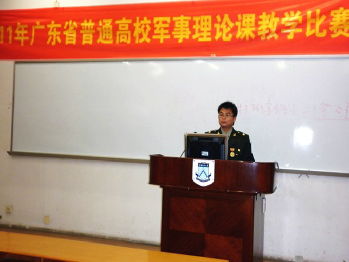 另悉,根据《关于举办广东省普通高校军事理论课教学比赛的通知》(粤教体函〔2010〕69号)的工作安排,大赛最后由专家评审组评选出一等奖2名,二等奖3名,三等奖5名,优秀奖10名。全省高校军事理论课教学比赛每2年举办一次,属于全省军事理论教学中最高赛事。
