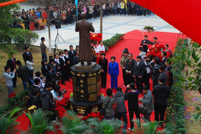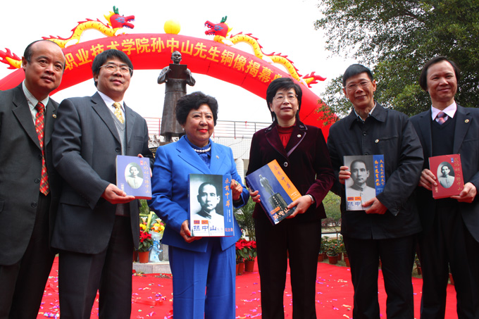 3月5日,孙中山先生的孙女孙穗芳博士抵达我校出席孙中山铜像揭幕仪式,并现场捐赠《国父孙中山先生纪念集》、《我的祖父孙中山》等书籍及题词“天下为公”的书法作品。副市长叶维园出席仪式。
