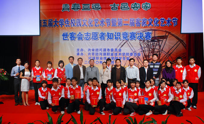 11月10日,我校第五届大学生校园文化艺术节暨第二届客家文化艺术节之“古邑情,客家亲”世客会志愿者知识竞赛总决赛在学术报告厅隆重举行。团市委副书记周鑫、我校学工处处长、团委代表、各二级学院相关负责人、学生代表参加了此次活动。大赛还邀请了团市委学少部部长李旭军等五位老师作为大赛评委。