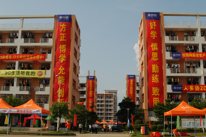 在校园各校道上可以看到, 五彩斑斓的“星空在线(中国)唯一官方网站欢迎您”标语旗子随风飘摇;清晰明了的车辆行驶指示牌也被安放在最显眼的地方;“厚德、强技、奋发、敬业“的大红幅,横挂在风雨操场上方……