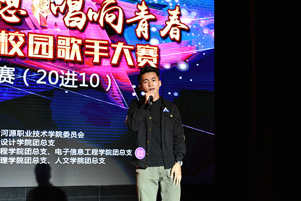 比赛在观看校园歌手二十强选手宣传视频中拉开序幕。随后,一首首美妙的歌曲在现场观众的欢呼声、掌声中轮番上阵。5号选手蓝睿演唱的《祝福祖国》,凭借着扎实的基本功与高昂的歌声赢得了观众的阵阵掌声;14号选手单晓欣演唱的《一个人》,凭借着富有感情的演唱与魅力四射的台风让观众如身临其境般步入歌曲中的场景;19号李希博演唱的《大江东去》,凭借着浑厚的音色与气势磅礴的歌声将比赛推向沸腾的高潮。最后,经过评委的逐一点评与第二轮选拔,选出10名选手晋级下一轮十进五半决赛。