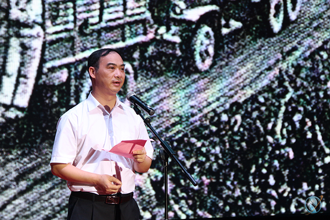 演出开始之前,赖小景副校长代表学校上台致欢迎词,他介绍道:“广东省南洋归侨联谊会以‘南侨机工’的真实事迹为蓝本,以他们在滇缅公路上发生的最艰苦、最悲壮的故事为主线,自编、自导、自演,用近一年的时间创作出舞台剧《赤子丰碑》,将‘南侨机工’可歌可泣的英雄事迹以舞台艺术的形式呈现出来”。他表示:“南侨机工”临危受命,威武出征,无畏牺牲,在中国抗战史、华侨史上书写了血与火、生与死的爱国主义壮丽诗章。并呼吁广大师生以史为鉴,爱我中华,为实现中华民族的伟大复兴、共圆中国梦,贡献自己的力量。
