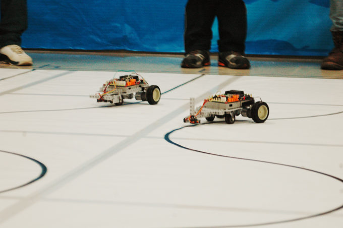 此次决赛共有12组参赛选手,分三轮进行。选手们携同他们的机器人一同比赛,比赛以机器人能够又快、又准、又稳到达终点为胜利。据悉,机器人由选手们根据有关程序精心制作而成,会自动检测赛道状况,并准确走在规定路线上。