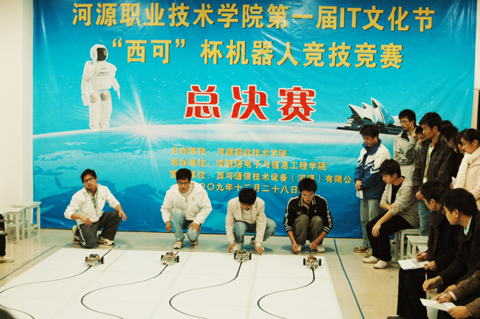 12月28日,我校第一届IT文化节“西可”杯机器人竞技竞赛总决赛在实训楼A213举行。活动旨在拓展同学们的IT视野,引领IT时尚,营造和谐校园。电信学院相关负责人出席了此次活动。