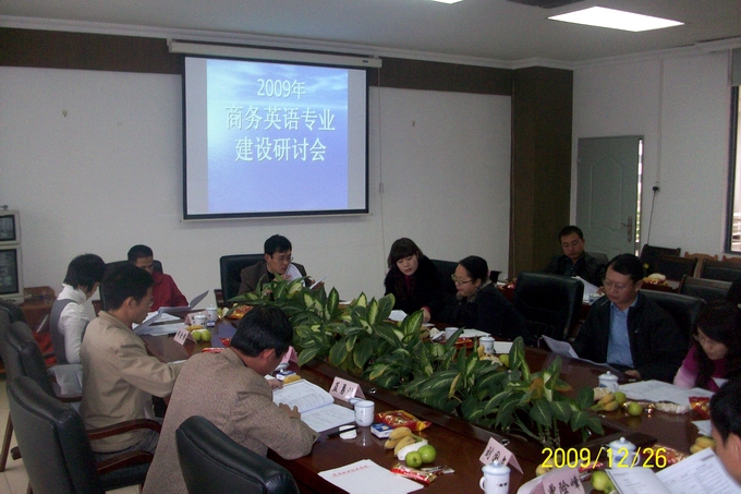 12月26日下午,人文学院商务英语专业在教学楼A302召开2009年度商务英语专业建设研讨会。研讨会主要研究了2009商务英语事务专业标准、实训基地建设、校企合作等问题。