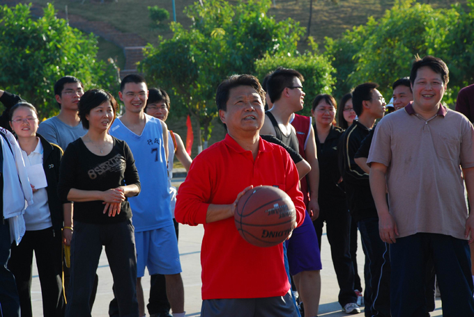 陈农心副校长在投篮接力比赛中“认真瞄准”