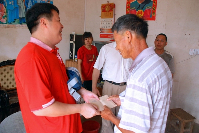扶贫一行与镇、村干部共同召开了扶贫动员大会;还分别深入到各贫困户家中,与他们亲切交谈,了解实际情况并送上慰问金。贫困户纷纷表达了感激之情。