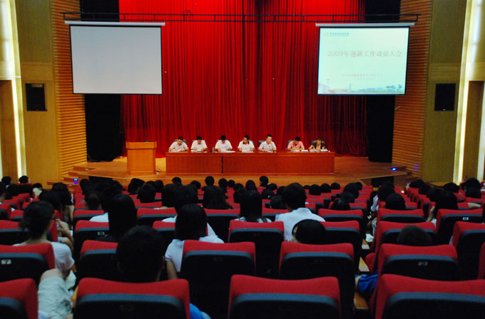 为确保09年迎新工作的顺利进行,我校特地为此成立以陈农心副校长为首的迎新工作小组,并于9月7日在学术报告厅召开2009年迎新工作动员大会。团委相关领导、各院团总支及各学生组织代表均出席了此次会议。