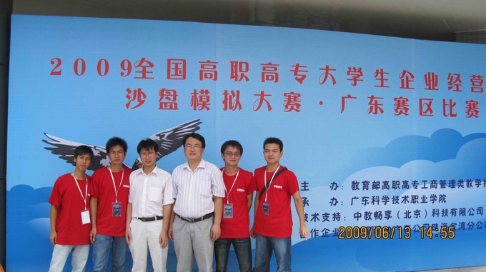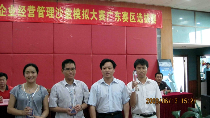 6月12-13日,由教育部高职高专工商管理类专业教学指导委员会主办的“2009年全国高职高专大学生企业经营管理沙盘模拟大赛广东省赛”在广东科学技术职业技术学院进行,共有来自全省高职院校的32个代表队参加了比赛。经过两天激烈角逐,我校代表队荣获省一等奖。顺德职业技术学院等5所院校荣获省二等奖,深圳职业技术学院等7所院校荣获省三等奖,番禺职业技术学院等院校荣获优胜奖。我校代表队将参加2009年7月在山东商业职业技术学院举行的全国决赛。