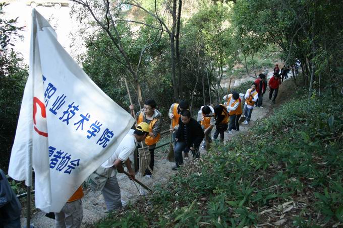 早上9点,一面白色的“河职院青年志愿者协会”旗帜飘扬在笔架山山脚下,身穿黄色志愿者工作服的志愿者团队开始了筹备已久的清理垃圾义务环保活动。青年志愿者们手拿铁锹或扫帚,将山上堆积的垃圾清理到垃圾车上。大家不怕苦不怕累,活动的热情始终很高涨。记者看到,不单只是志愿者参加了今天的清洁活动,也有一些爬山的市民主动加入进来,他们被志愿者们忘我的劳动精神感动了,自愿加入到志愿者的劳动行列一起捡垃圾。活动历时近三小时,志愿者们充分发扬了不怕苦、不怕累的奉献精神,相互配合,服从分配,展现了我校学生良好的精神风貌。