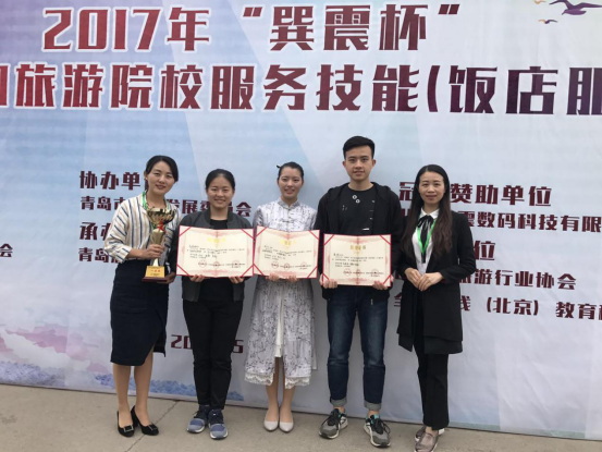 5月6-9日,“巽震杯”第九届全国旅游院校服务技能(饭店服务)大赛在青岛酒店职业技术学院落下帷幕。我校代表队分别获得高职组中餐摆台一等奖,中式铺床二等奖和西餐摆台二等奖。