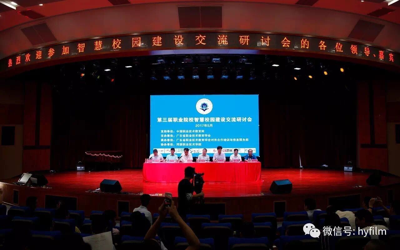 5月25日至5月26日,由广东省职业技术教育学会主办的第三届广东职业院校智慧校园建设交流研讨会在我校艺术楼演播厅举行。中国职业技术教育学会副会长李小鲁,清华大学教育研究院副院长韩锡斌,广东省人民政府督学彭铁英,河源市教育局副局长陈俊荡,学校代表,企事业代表,我校校长陈德清、党委副书记韦荣、副校长陈农心、副校长赖小景、副校长王小宁及各部门负责人、专业主任、教师代表等近300人参加了会议。