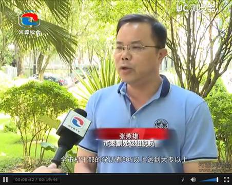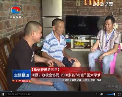 717日,河源新闻联播头条报道——河源:政校企协同2000多名”村官“圆大学梦,专题报道我校村干部大专班办学效果。
