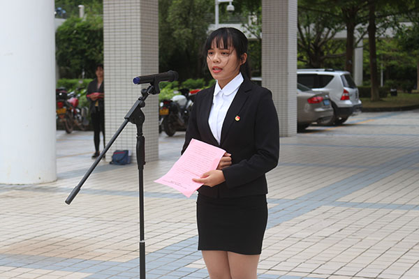 工商学院酒店管理1班的刘源作为新团员代表发言,他表示,加入团组织的信念与追求不动摇,决心在今后的学习和工作中,树立崇高的信念,严格要求自己,为成为一名优秀的共青团员努力学习,奋发进取。