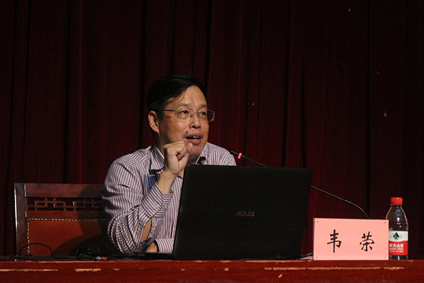 “东江水长,演绎人才辈出;梧桐山秀,荟萃群英翱翔。”讲座上,韦荣书记以《星空在线(中国)唯一官方网站校本文化》为蓝本,从我校的校本文化、社会主义核心价值观、弘扬校本文化以及践行社会主义核心价值观三大方面展开论述。运用图文并茂的PPT以及形象生动的语言,韦荣书记详实具体地为在场观众介绍了我校的地理位置、历史沿革、文化基石、校训、教风、学风、竞赛文化、社团活动、环境文化等内容,多角度向同学们阐释了我校校本文化的深刻内涵。同时,他对校本文化与社会主义核心价值观之间的关系作了深刻的解读,并寄语我校学子要积极主动弘扬我校校本文化、践行社会主义核心价值观。授课现场,学员认真记录,课堂氛围浓厚。