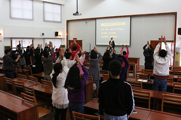 18日,祖晴老师围绕《一篇朗诵作品的诞生》及《浅谈配音艺术及初步体验》两大专题分别讲述了“朗诵的概念”、“常用的朗诵技巧”、“朗诵的特点”以及“朗诵的准备工作”;“配音作为新的语言表现形式的特点”、“配音技巧”、“动漫与译制片在语言表达上的区别”等内容。课堂上,她现场示范并教学练气技巧,现场配音等。