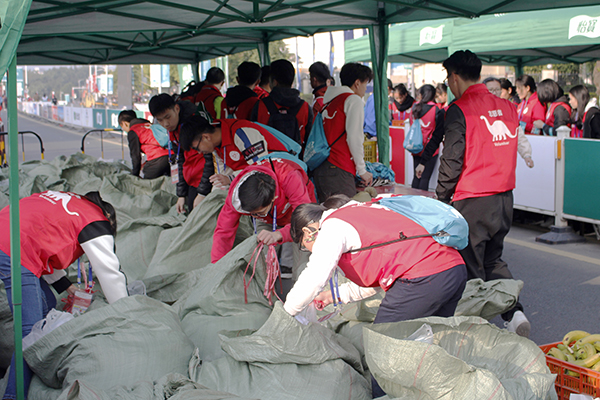 在志愿工作中,我校650名志愿者分派至全程马拉松、半程马拉松、迷你马拉松、家庭亲子跑四大赛事项目中多个赛事站点开展志愿服务行动,其中包括道路指引、安保协助、裁判记录、媒体宣传、物资管理与补给等多项任务。在此次盛大的体育赛事中,我校学子发扬奉献友爱的志愿者精神,尽职尽责,听从指挥,严格规范志愿者行为,出色完成了各项志愿服务任务。