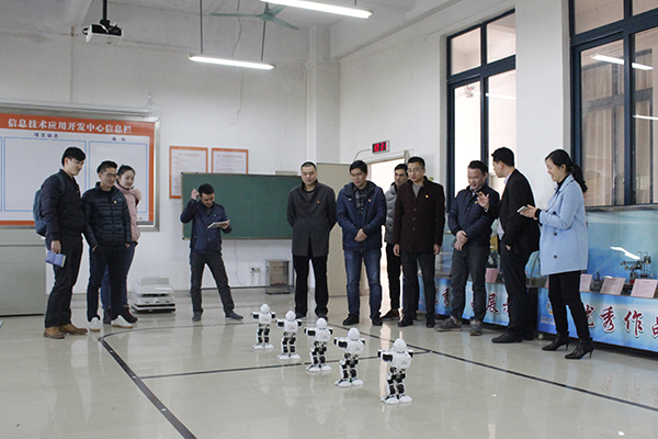活动伊始,团市委李冰副书记、我校团委陈晓峰书记、黄志鹏副书记一同陪同廖庆春部长一行参观我校办学情况。先后参观了我校的电信学院实训楼、图书馆、演播厅、学生事务服务中心。在电信学院实训楼,调研组参观了我校自主研发的机器人以及多项研究成果后充分肯定了我校所取得的成绩,殷切期望我校能不断创新,勇创佳绩。在学生事务中心,调研组详细了解了各窗口的功能区域划分和服务内容,并进一步了解它们的建成对促进学生管理和服务大学生科学化、高效化的情况。廖庆春部长对我校的学生事务服务中心予以高度评价,他表示学生事务中心是教育的阵地、咨询的窗口、办事的平台、学生成长的空间,真正实现了为学生服务。