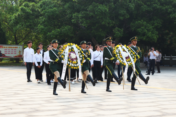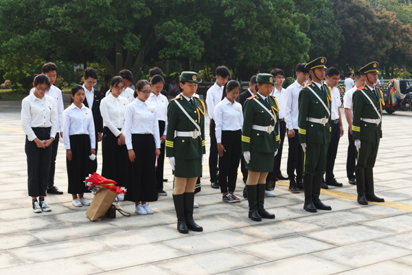 随后,我校全体师生进行庄严的宣誓。紧接着,在黄志鹏副书记的带领下,全体师生为革命先烈敬献花圈并默哀鞠躬。活动期间,我校学生代表井然有序地参观了革命烈士纪念馆,进一步加强对先烈事迹的认识,铭记先烈的革命精神。