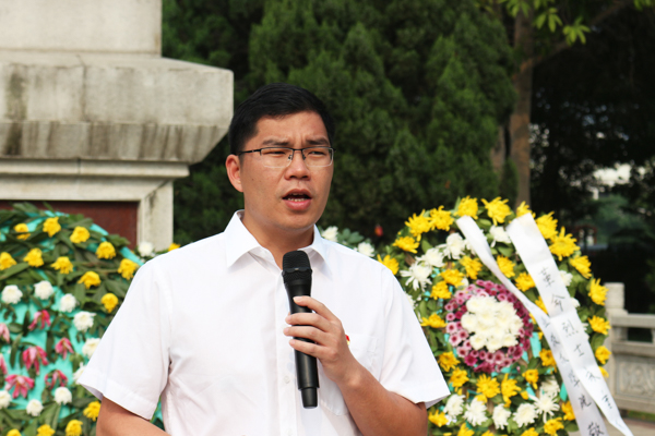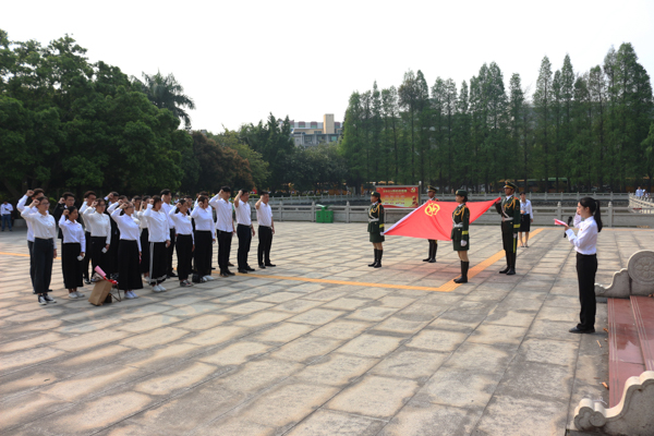 活动伊始,我校学生代表吴慧发言表示,当代青年应珍惜当下美好时光,继承先烈的遗志和精神,用我们的汗水和智慧,努力学习和工作,为中国经济建设和社会稳定贡献自己的青春力量。接着,黄志鹏副书记发表讲话,他指出,当代青年应当牢记誓词、弘扬革命精神、不忘初心、牢记使命,努力使自己成为一名优秀的社会主义接班人。